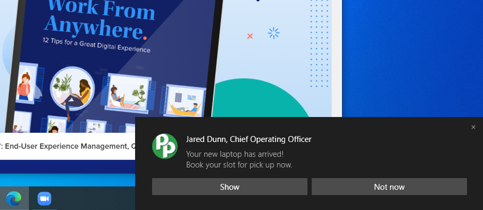Well, that’s no longer an option now for HR, they need technology to carry their message directly to employees. Some IT teams are helping HR by locating and messaging the right employees at the right time. The example above is actually a real scenario from a customer. HR noticed an opportunity where employees could save money on their phone plans, so they teamed up with IT and targeted those employees’ work devices with onscreen notifications. The employees under the phone plan wound up saving an average of $105 dollars per year thanks to the savvy intervention by both teams.