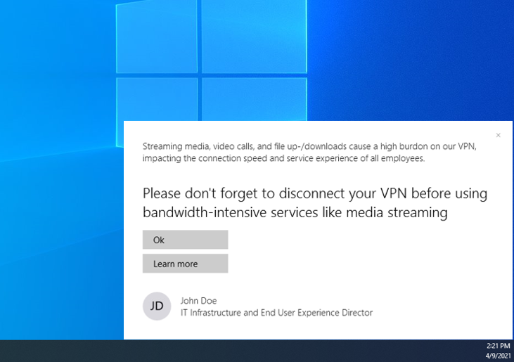 Rather than relying on shoddy data or employees to voluntarily update HR, your IT team can step up and deploy targeted messages direct to remote or in-office workers.