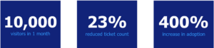 Not only did this targeted education about the portal drastically increase usage and improve employee experience, it also reduced the IT ticket count by 23%. Employees could access help and resources immediately when they needed it leaving IT more time to focus on other digital transformation projects.