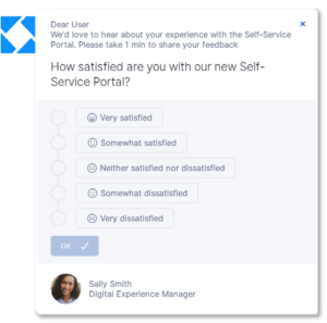 Once the adoption took off, the IT team also leveraged Nexthink Engage to gather feedback from users about their satisfaction with the self-service portal. This feedback helped them prioritize improvements to the portal that could further improve user adoption.