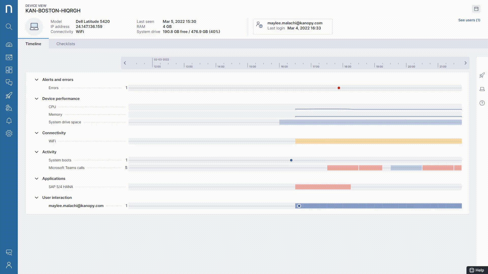 If IT were to use a standard APM tool, they’d only have access to application performance data and little else. They’d miss out on critical components like PC performance, resource utilization from the endpoint, application stability, and network speed and configuration data, all of which offer more context about what the user was truly experiencing at the time an issue first begins. Without this data, it could take you a long time to discover the root cause of the issue – if you even can.