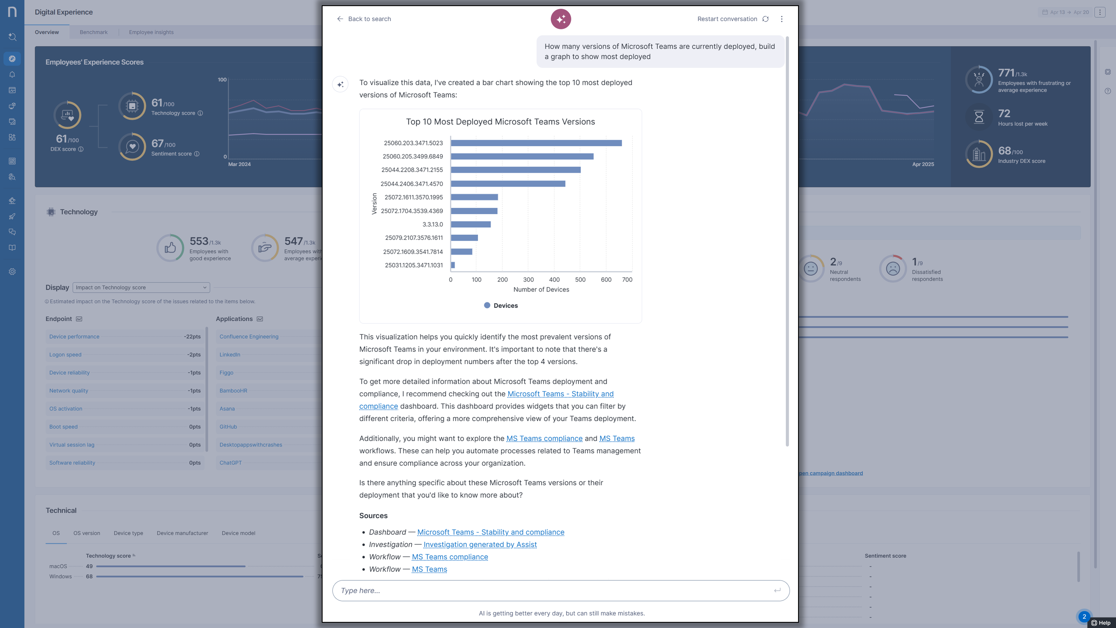 However, at Nexthink, we didn’t just want to offer a “co-pilot” or a flashy feature. From day one, we believed that conversational interfaces would be the primary way to access DEX information and provide the best DEX advisor for everyone. Assist 2.0 is a giant step forward toward that vision and we are really excited about the possibilities.