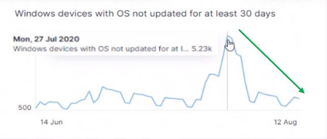 This UK mining company wanted to ensure that a critical Windows 10 feature update had been successfully deployed. They saw that over 6,000 devices had not rebooted in more than 30 days preventing them from receiving the update, potentially leading to performance degradation and security risks.