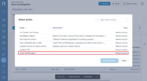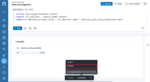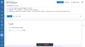 Step 1: Run an Investigation to identify the devices without the SCCM package by running the query in the NQL editor