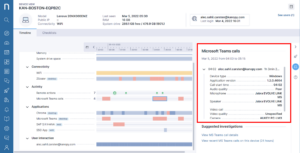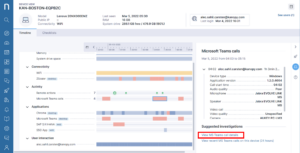- Nexthink Device View to highlight the correlation between MS Teams Sessions and device activity.