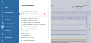 Step 1: Navigate to the Live Dashboards and click on Call Quality Diagnosis – MS Teams and Zoom