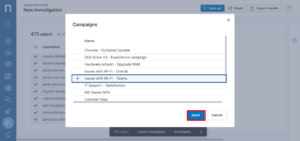 Depending on the analysis of an issue there may be different solutions, such as remote actions, self-help campaigns, or others. Since we are dealing with a WIFI issue here, where it requires user action to fix, we will use a Nexthink Employee Engagement Campaign to attempt to fix the issue.
