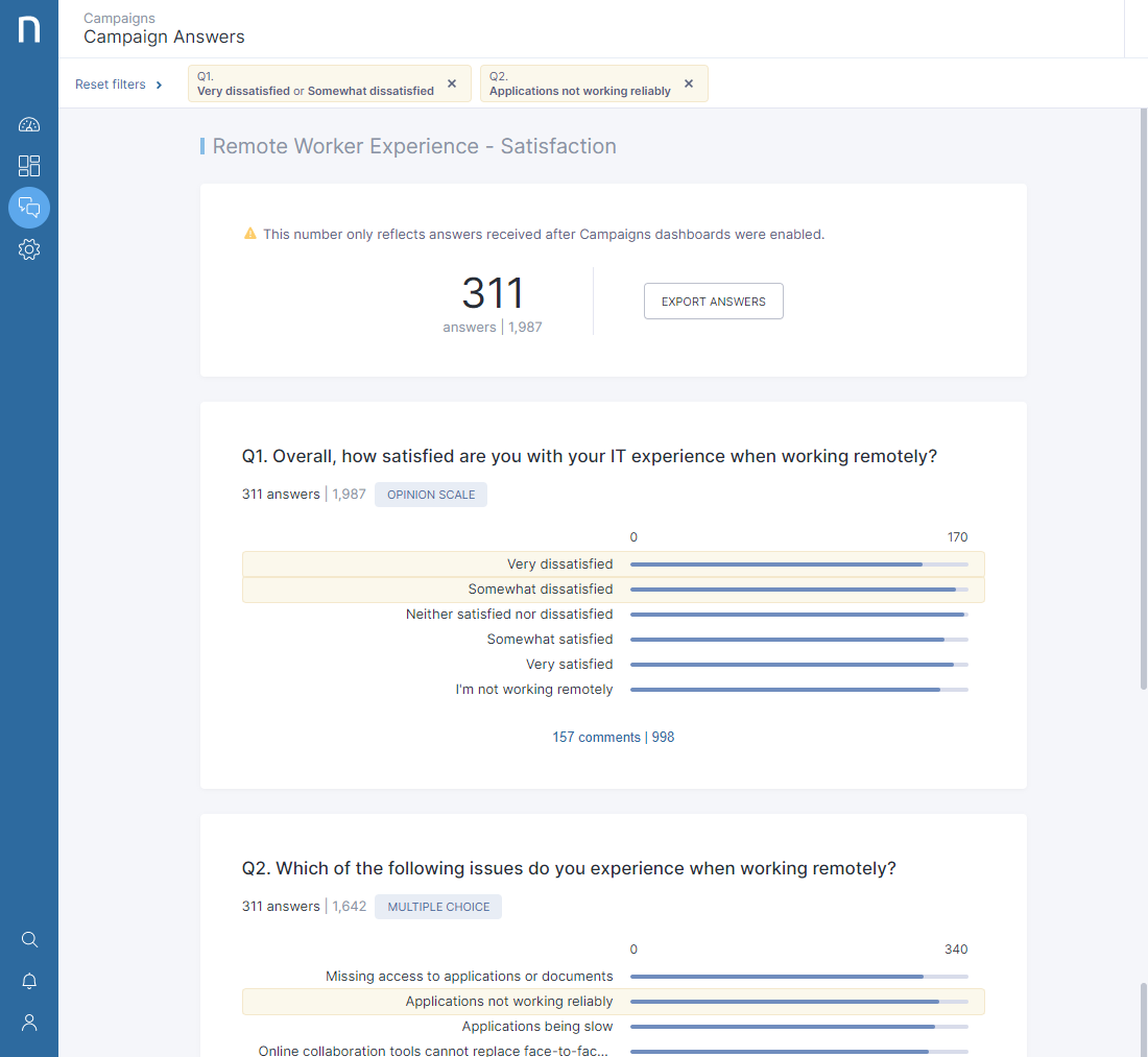 This release sees the introduction of interactive filters to the campaigns dashboard. This allows users to filter campaign results by answers to quickly identify any correlation between different question responses, bringing increased focus to the success of each individual campaign and providing immediate insight into how to continuously improve engagement through subsequent campaigns.