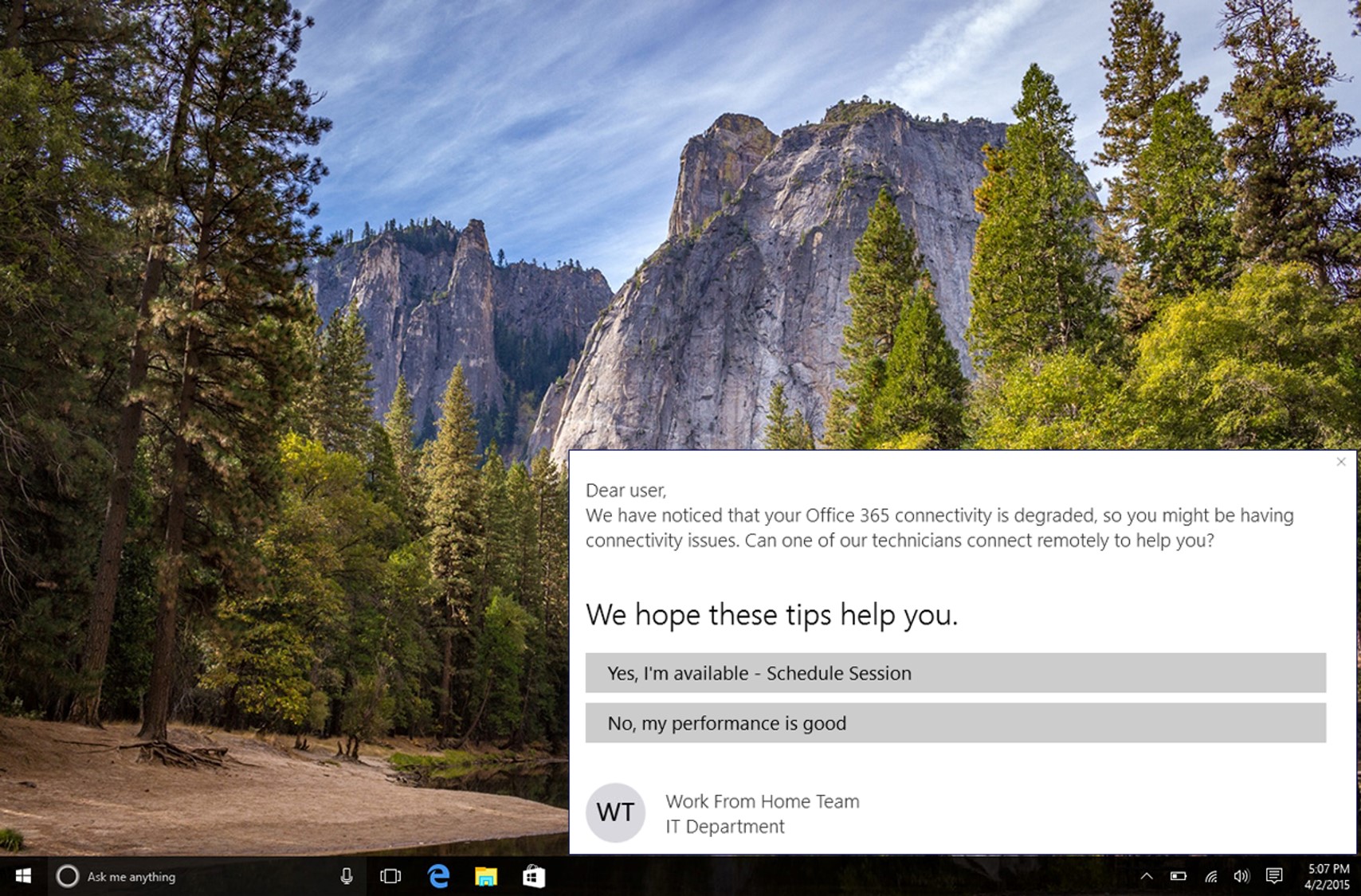 For example, a week after deploying Skype, some users experienced a sudden drop in connectivity. With Nexthink’s alert system, IT was immediately notified and they were able to quickly identify that the drop came from a weak Wi-Fi signal and not the Zoom application. In just a few clicks, IT then sent out a Nexthink on-screen message to those affected users, instructing them to move closer to their routers.