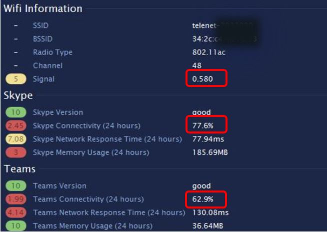 Poor Skype and Teams performance was attributed to a weak Wi-Fi signal
