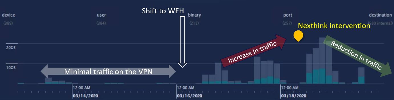 Manchmal nutzen Kunden sogar die Erkenntnisse von Nexthink, um Mitarbeiter zu isolieren, die gar nicht erst mit dem VPN verbunden werden müssen.