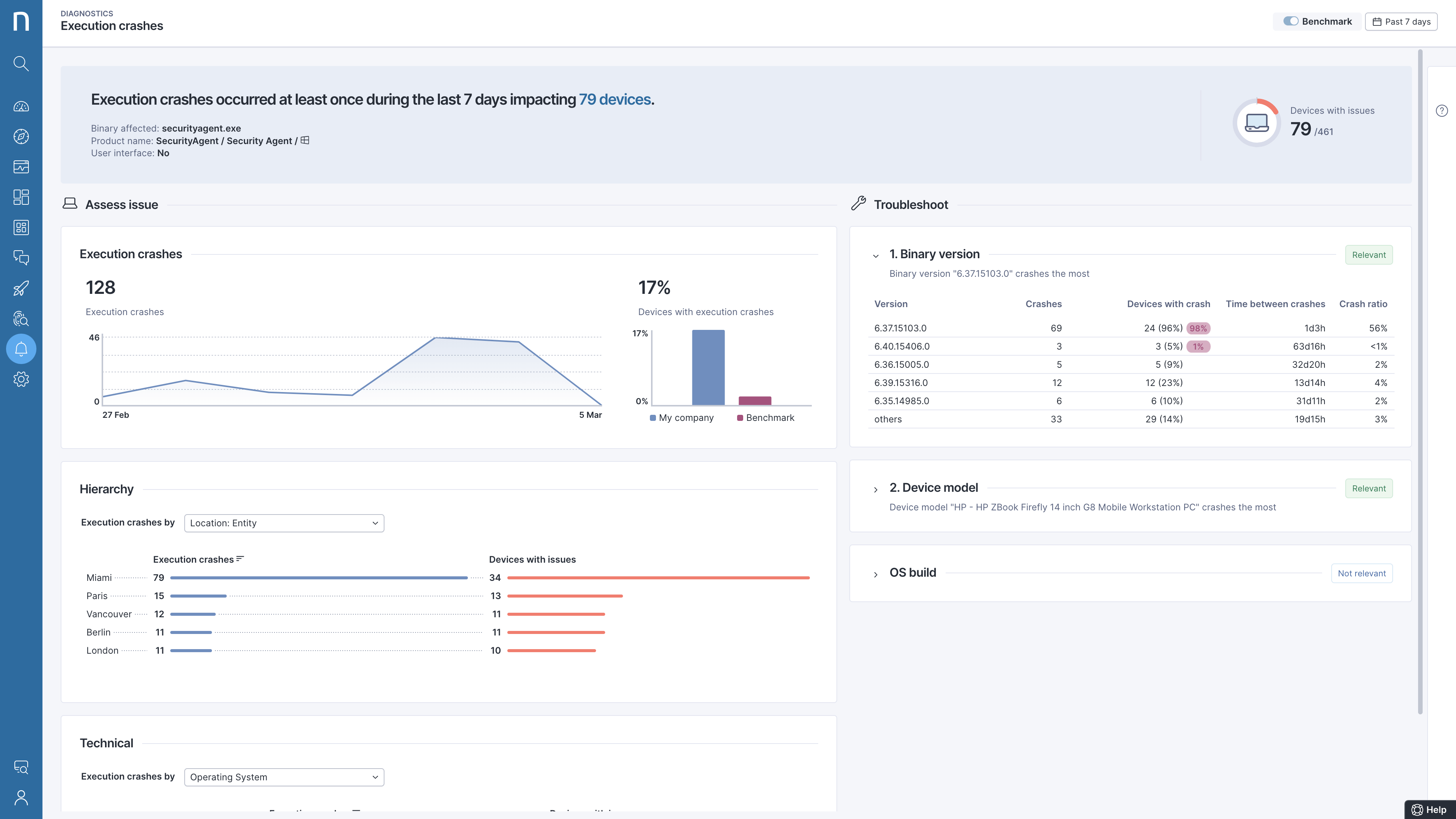 Dieser Kunde ist in einer hochgradig regulierten Branche tätig. Herkömmliche Lösungen, die bei der Infrastruktur oder Netzwerken ansetzen, hätten das Problem nicht bemerkt und das IT-Team hätte erst durch Mitarbeiterbeschwerden davon erfahren. Die proaktive Identifizierung des Problems durch Nexthink verhinderte potenzielle Compliance-Verstöße auf betroffenen Geräten. Auch die Belastung durch tagelange Untersuchungen, um die Ursache und den Umfang des Problems herauszufinden, entfiel. Dieses einfache Beispiel zeigt eindrücklich, wie ein gängiges Problem mit einem Ansatz, der die Mitarbeiter in den Mittelpunkt stellt, beseitigt werden kann.