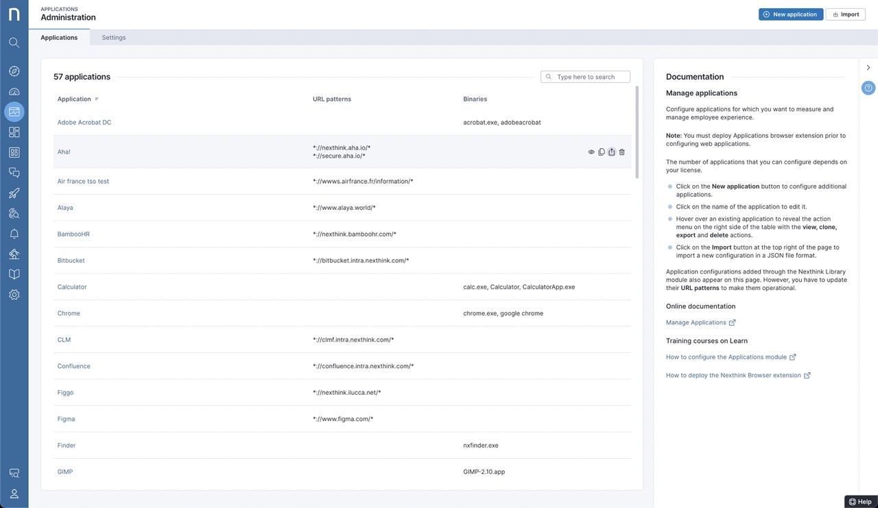 Of particular interest to customers who have multiple operating environments (e.g. development, pre-production testing, production), or for MSPs who manage multiple customer client tenants, application configurations can now be exported and imported for fast, easy and error-free re-use across multiple Nexthink cloud instances.