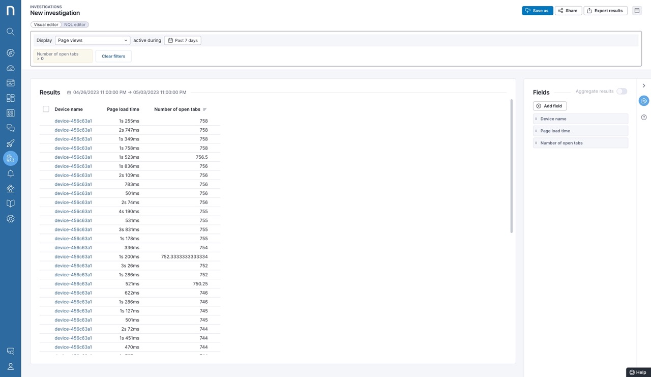 This new telemetry may be monitored and proactively managed to ensure a highly performing employee experience across all web applications. For example, based on employee device configuration (e.g. specifics of CPU and Memory), those devices having a configuration which has been found to degrade when a specified or larger number of open tabs can be sent proactive Employee Engagement campaigns to inform them (or to automatically via Nexthink Remote Actions) reduce their open tabs preventing issues before they are experienced.