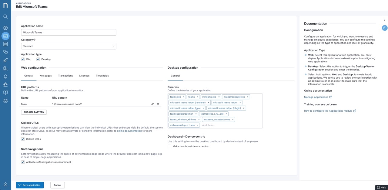 Predefined configurations for Teams and Zoom are now available for Collaboration Experience to allow for easier and better correlation between call quality issues, and the actual performance of the applications. These configurations jump-start users by providing an error-free and immediate starting point for productive work. This avoids the need to manually configure – and potentially miss – all appropriate url patterns, soft-navigations, and binaries.