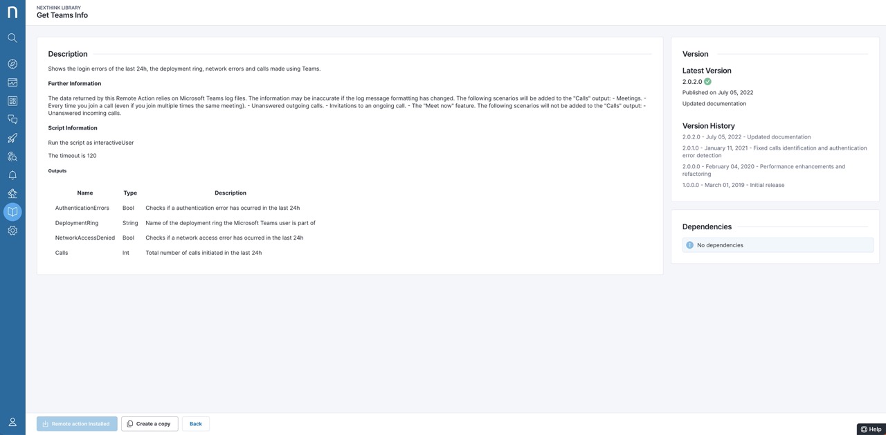 There are four remote actions provided to obtain additional troubleshooting information specific to Microsoft Teams: