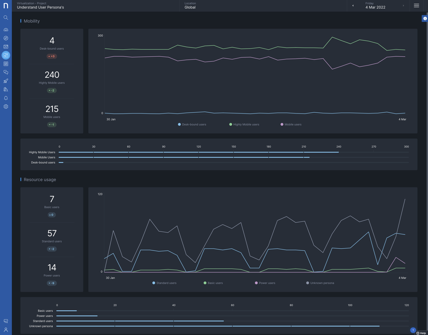 A deep data-driven understanding of users, their environment, and their working style (i.e. their persona), measuring hard metrics and user sentiment, is an essential prerequisite to any successful transformation initiative. Enterprises have diverse personas and IT must thoroughly assess both user and environment readiness ahead of any digital transformation projects.