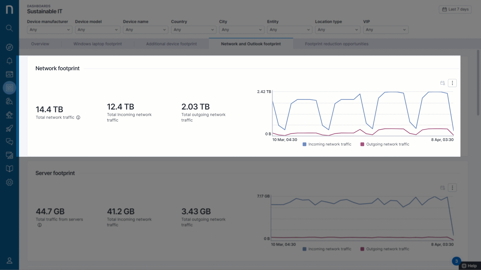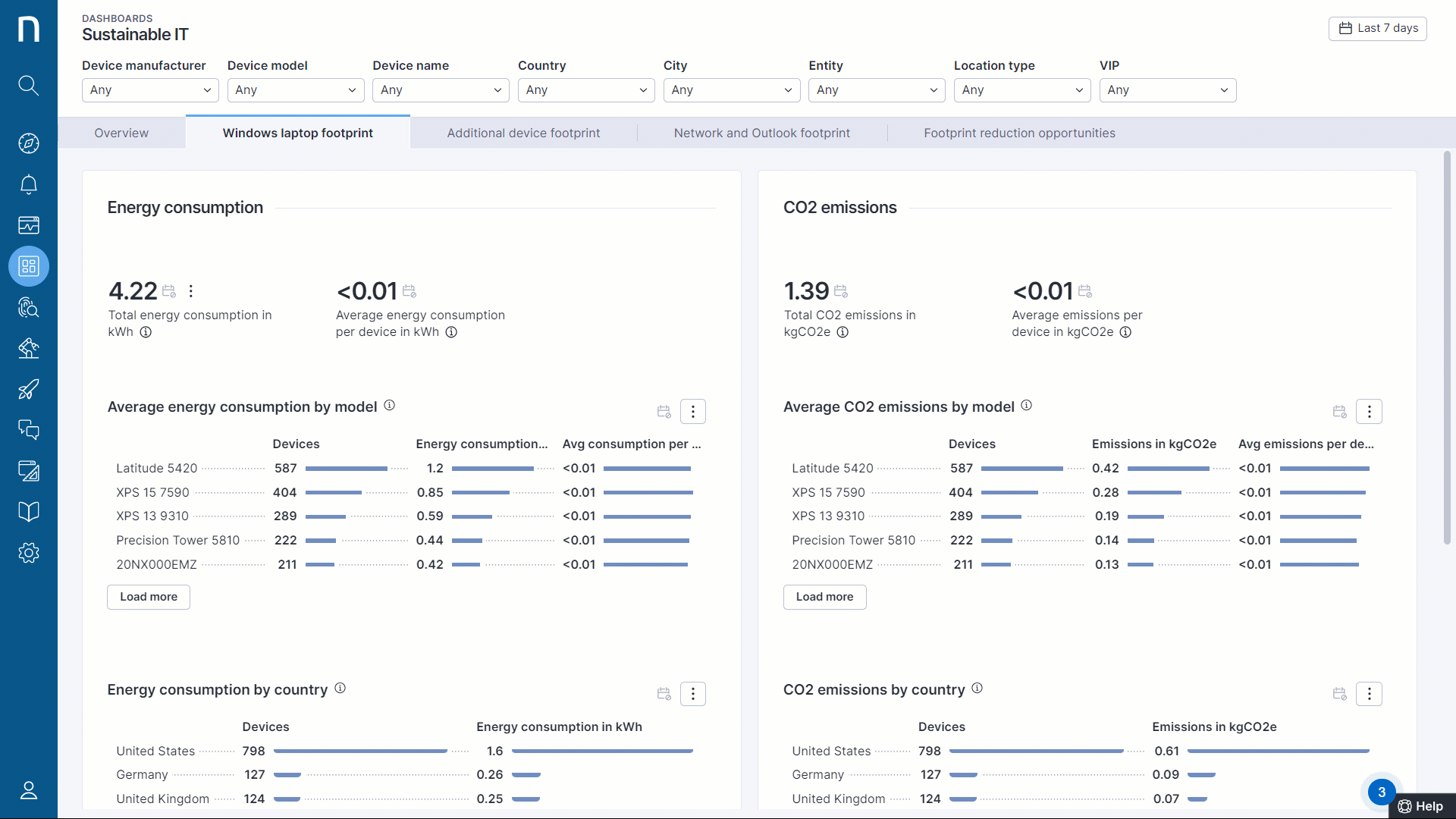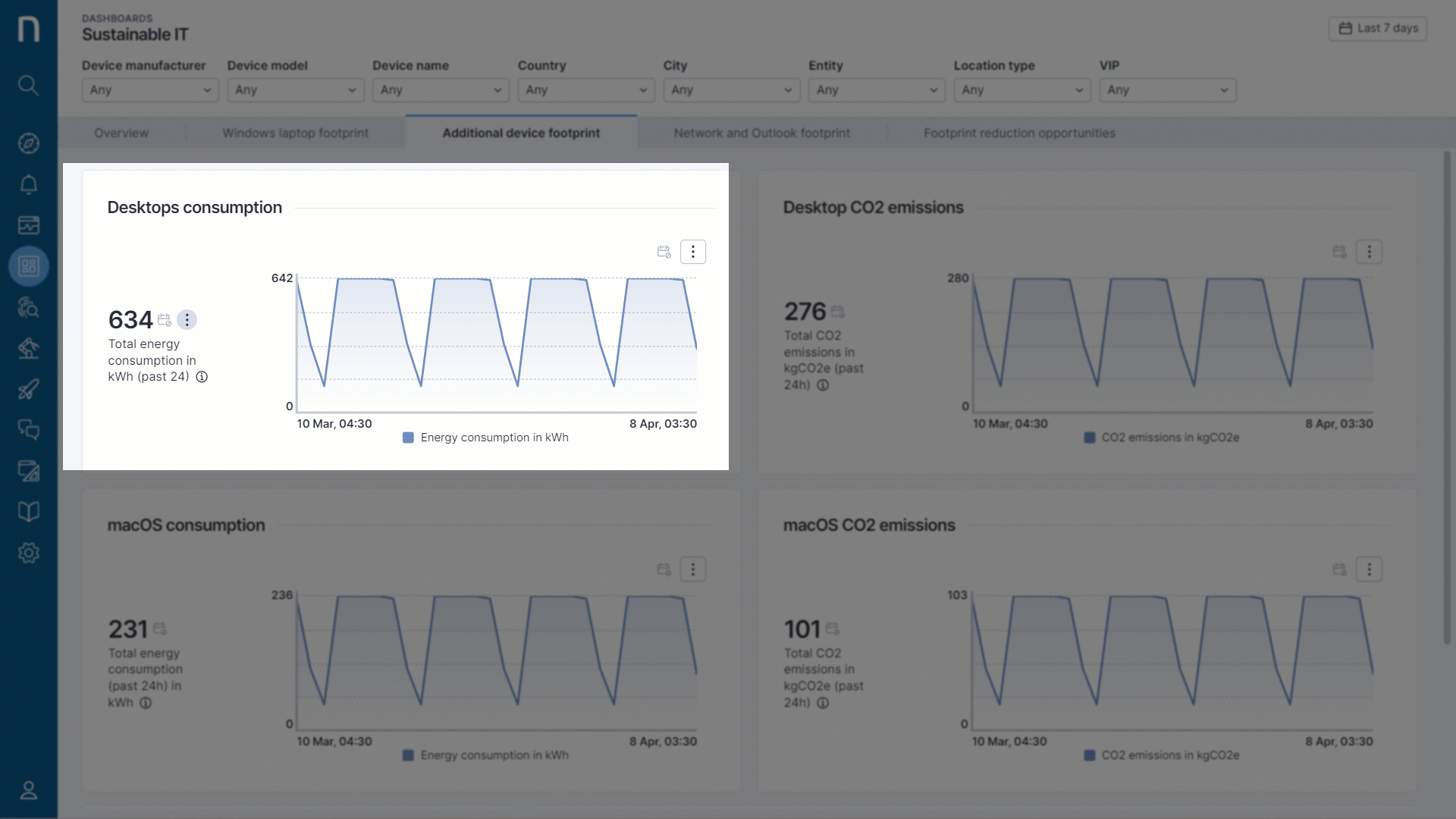 Although no direct energy and carbon footprint calculations are made on the dashboard, the impact can be measured using the Sustainable IT calculations documentation available for Nexthink Community users.