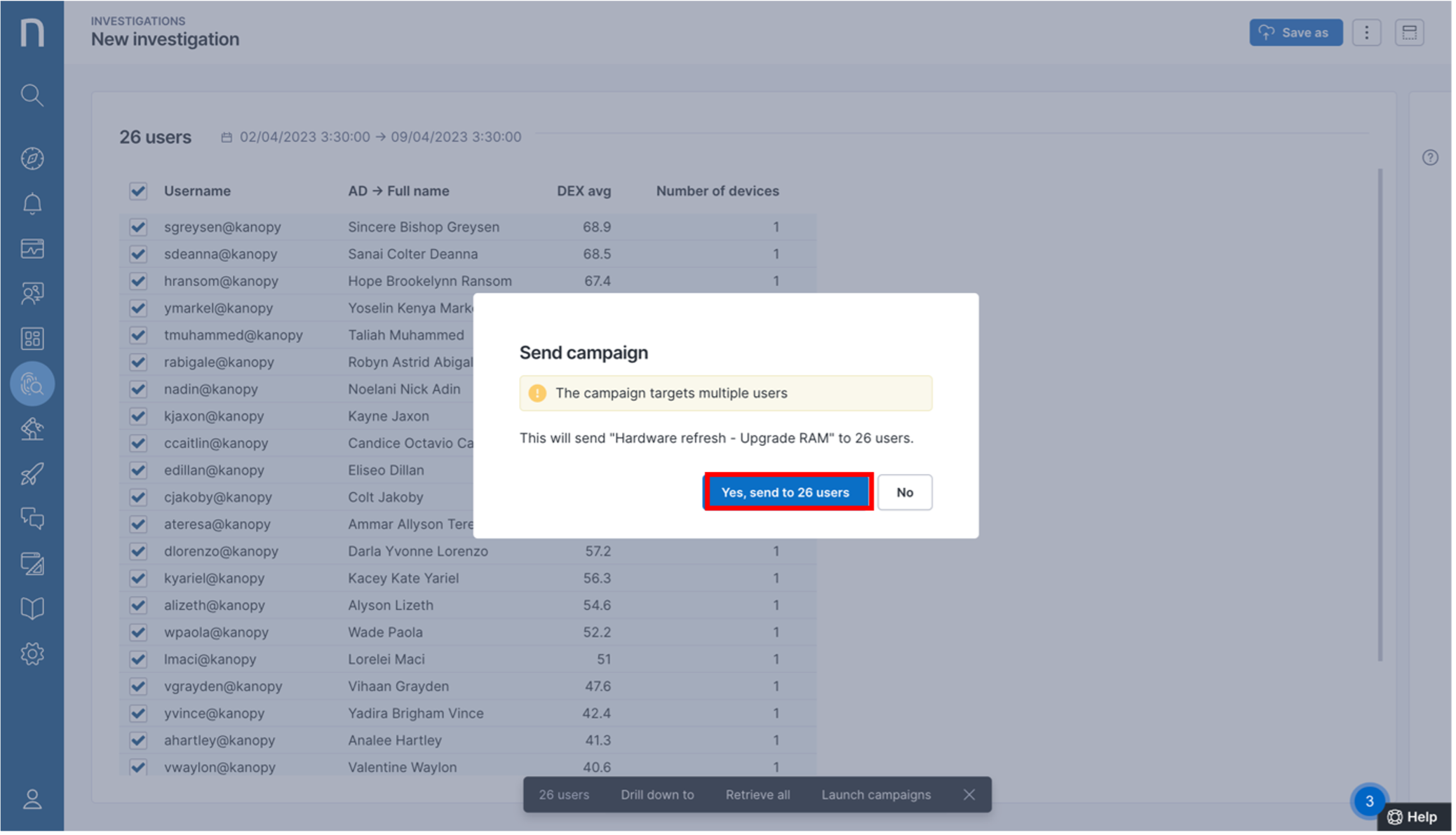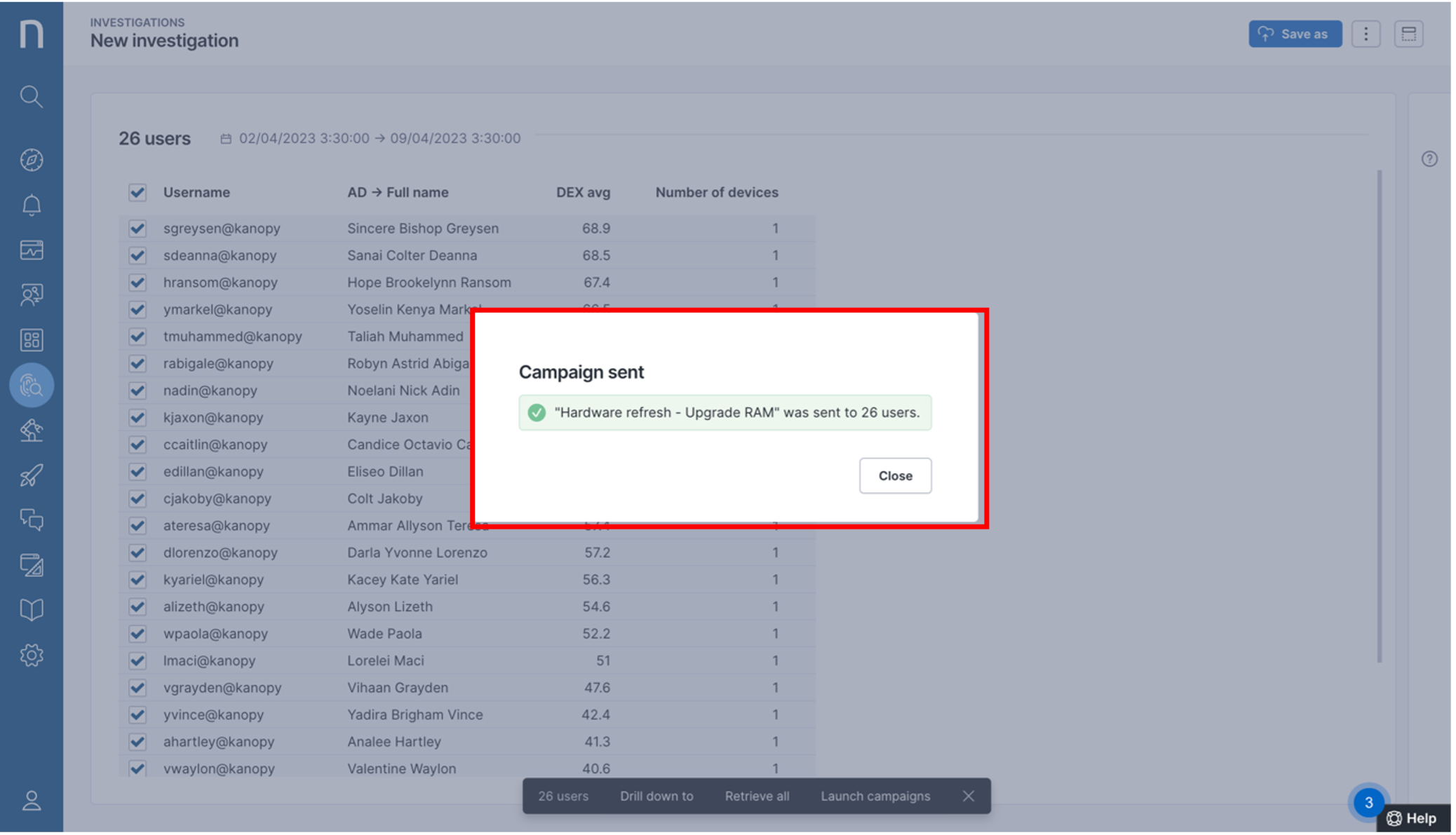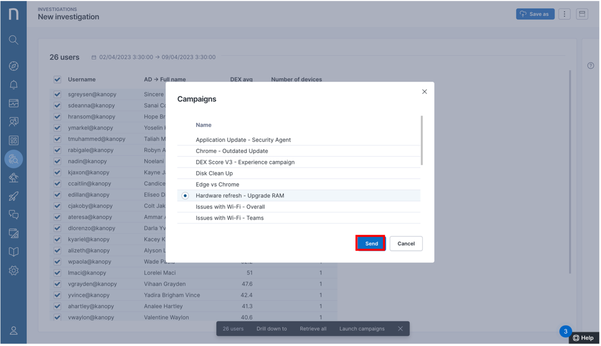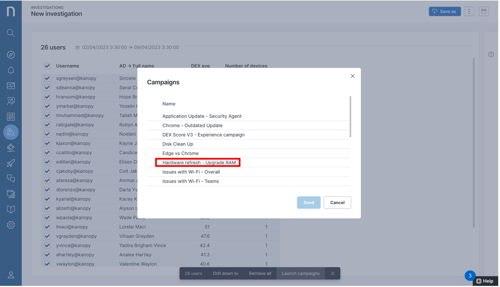 From here, you can send a campaign for Hardware Refresh - Upgrade RAM to all the users.