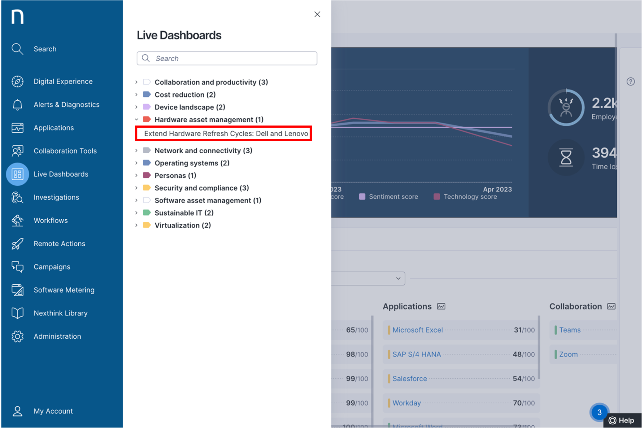 Step 2 : Here, click on the drop-down for Hardware asset management to access the Extend Hardware Refresh Cycles: Dell and Lenovo live dashboard.