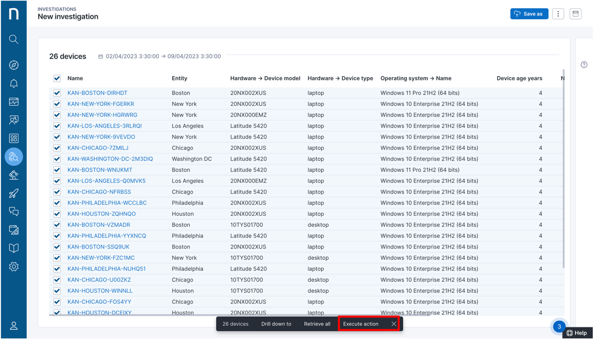 Step 11 :Select all the results to run an investigation to identify the users of these devices and click on Execute action.