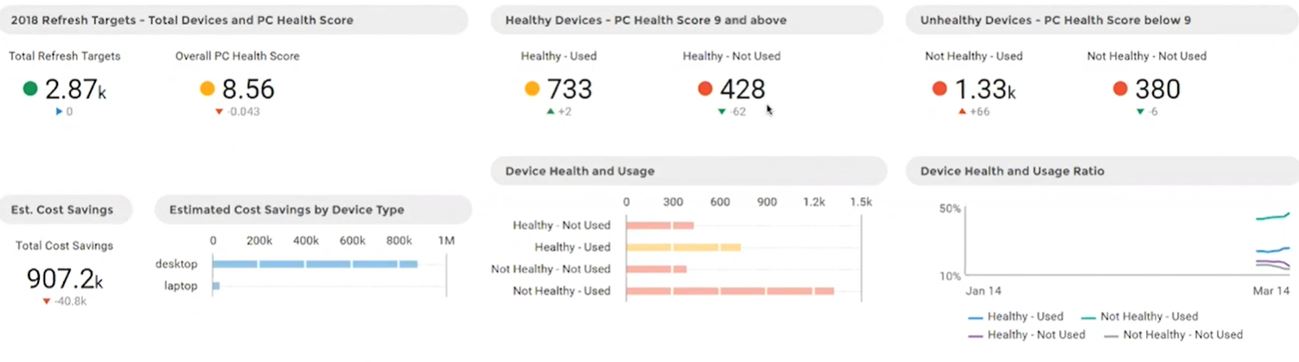 - Not healthy, not used – 380 devices were essentially “junk” machines, so IT reclaimed and discarded them.