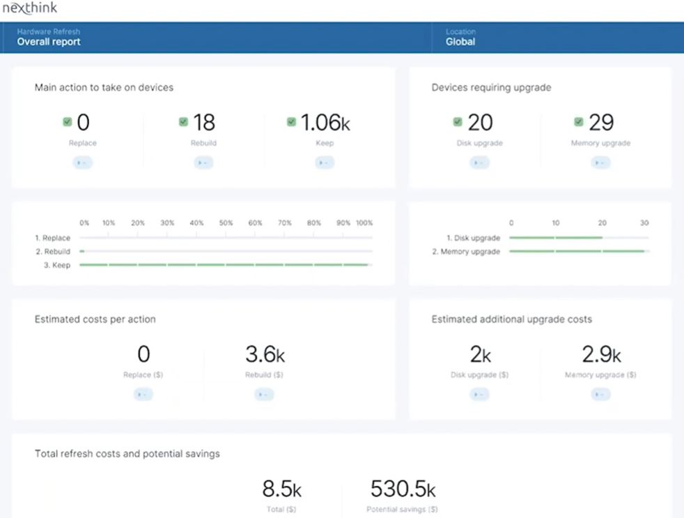 Nexthink customers receive clear guidance on unique remediation actions and cost/benefit breakdowns