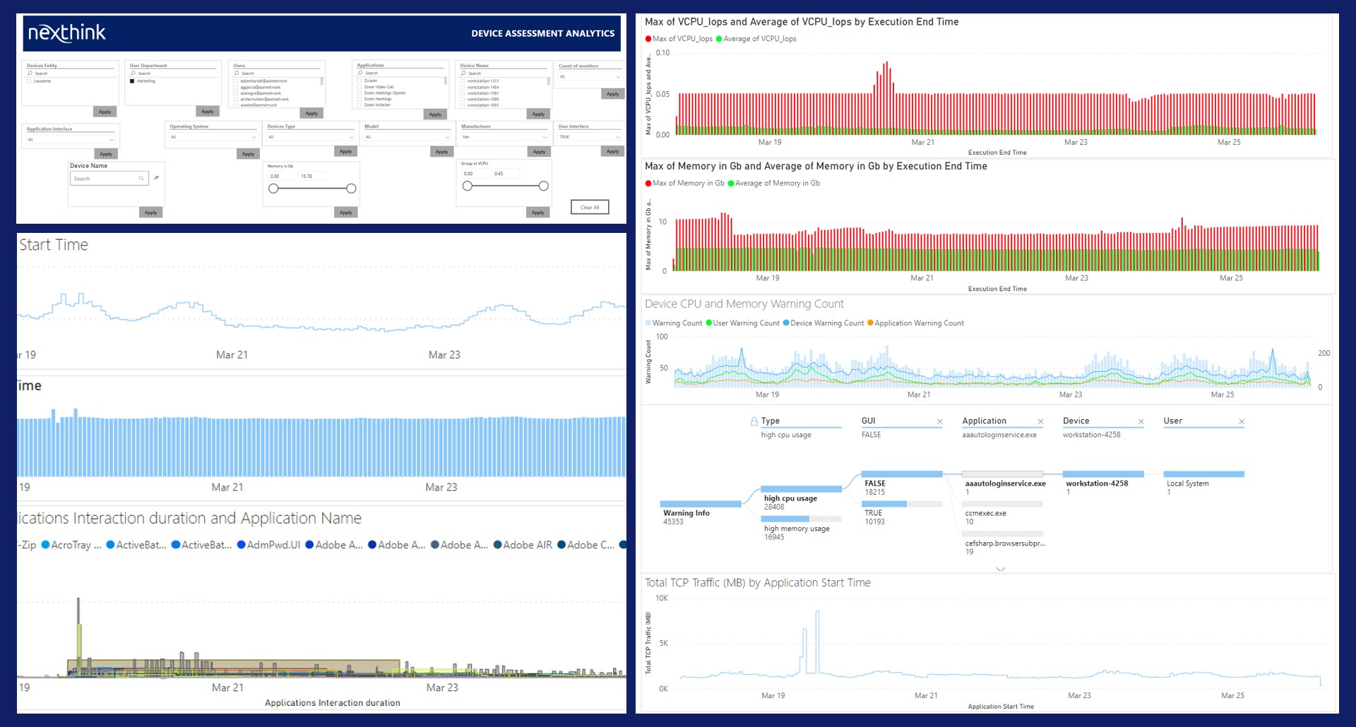 A large healthcare company developed a quick and easy integration to track application impact on device start-up, alongside other data sources, into their preferred visualization tool – Power BI. The dashboard leverages a Nexthink remote action that retrieves start-up details and populates the dashboard’s custom visuals.