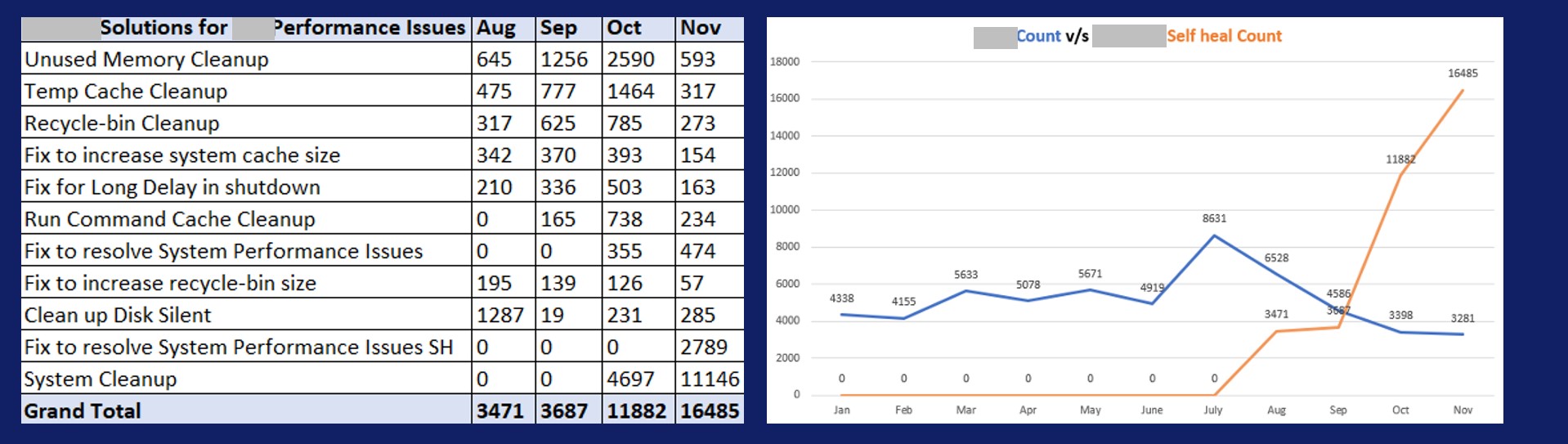 If employees encountered an issue, they could now check their IT service portal to fix it themselves in an instant, one-click fix. The Service Desk could then focus on more serious issues. In just four months, their new self-help system triggered over 35,000 remote actions, which dramatically reduced L1 support workload.