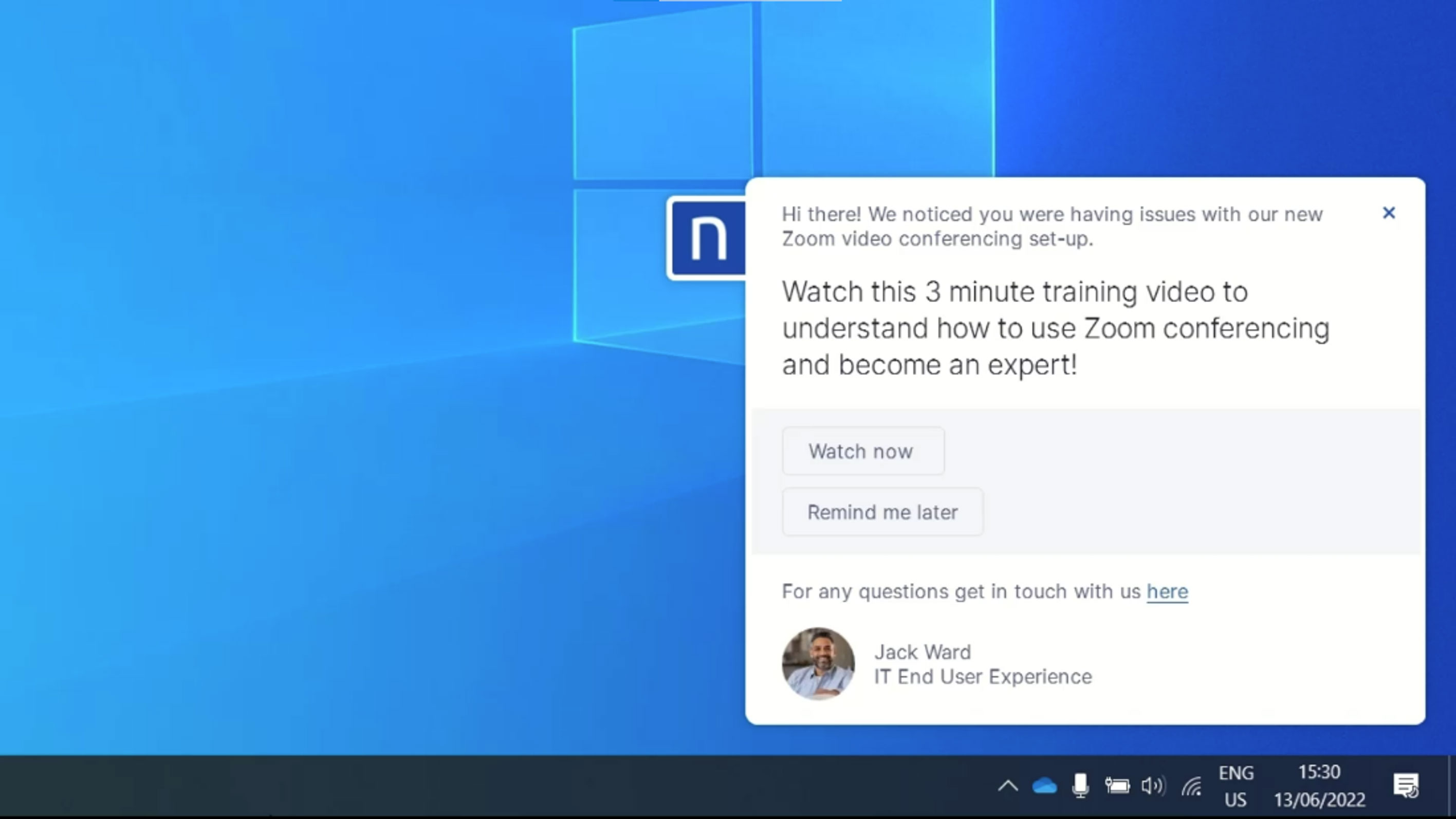 Each employee received a notification prompting them to watch a 3-minute training video on how to best utilize Zoom.