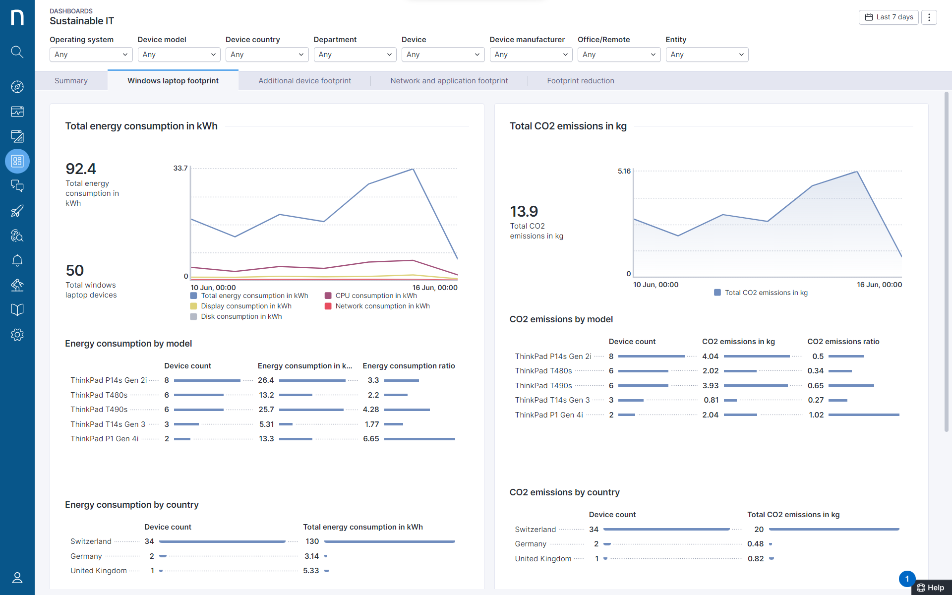If you want to measure your progress, you first need to set a baseline. Our Sustainable IT Solution now includes powerful live dashboards with dynamic filtering capabilities for operating system, device models and manufacturer, and more, to give insights into your sustainability performance through any lens or level of granularity. This provides the raw data needed to report on CO2 emissions from your digital workplace and enables you to baseline performance for continuous improvements.