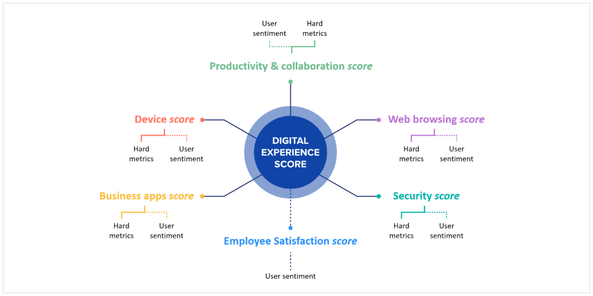 To create successful tailed IT solutions, IT should establish key performance indicators that provide a holistic understanding of the employee work experience by combining both hard technical metrics and key employee feedback and sentiment data.