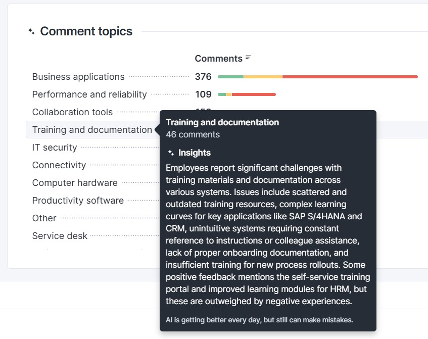 With the new AI Insights feature in Experience Central, customers can automatically collect and analyze comments from hundreds of thousands of employees - and turn them into clear, actionable insights. It’s the most accurate and scalable way yet to improve the digital employee experience. And for IT teams, it provides a prioritized, evidence-based list of what to fix across all business services.