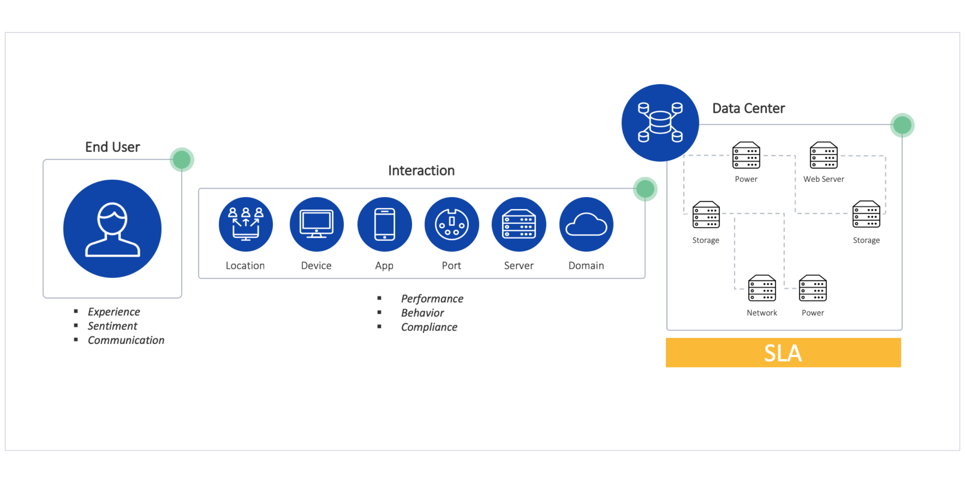 L’ITSM telle que nous le connaissons s’articule autour du datacenter : tant que les signaux sont au vert, tout va bien. En d’autres termes, la visibilité sur la qualité des services IT se limite à un point de vue strictement technique centré sur le comportement des composants du datacenter – réseau, serveurs, applications etc. – et c’est bien là que le bât blesse. En effet, un SLA fait l’hypothèse que si un problème technique visible est résolu, alors il n’y a plus de problème. Or l’utilisateur final a bien souvent une toute autre expérience. S’il est vrai que la visibilité sur des métriques techniques reste essentielle, elle ne donne pas moins qu’une image partielle de la situation car elle ne prend pas en compte l’expérience de l’utilisateur final. Sachant que la plupart des problèmes de sécurité et de performance découlent précisément des interactions entre les postes de travail et l’écosystème numérique, il n’est pas surprenant de constater des bénéfices significatifs lorsque le contexte d’usage est pris en compte. C’est tout l’intérêt des accords de niveaux d’expérience ou XLAs : Plus large que le SLA qui est restreint aux frontières du datacenter, le XLA va englober le contexte dans lequel se place le poste de travail et le ressenti des utilisateurs.