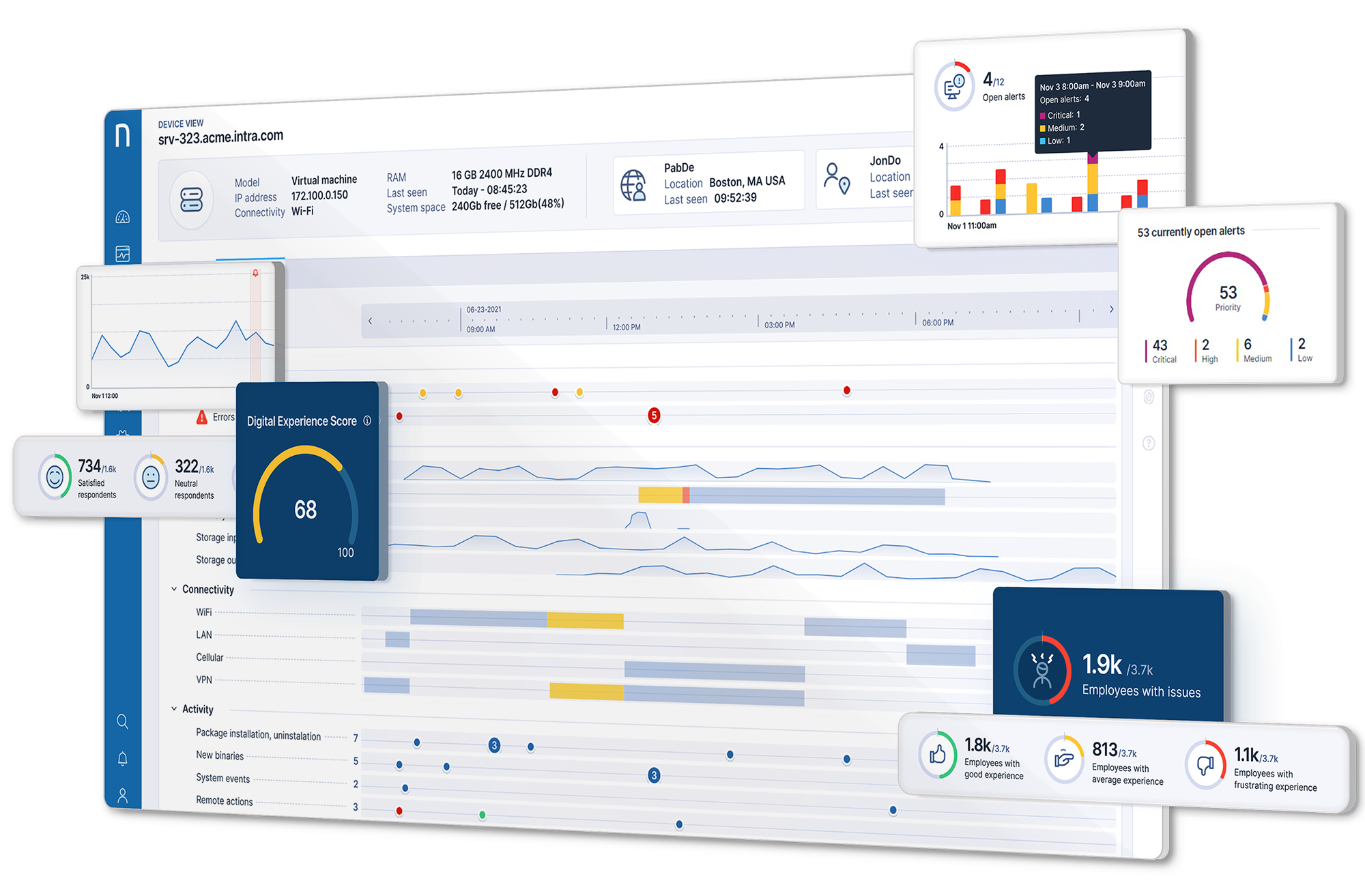 Proactively identify employee experience issues before they become IT problems, with immediate red flags about any incident.